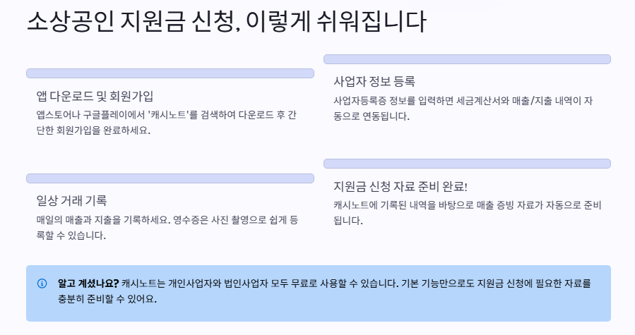 소상공인 지원금 신청 시 캐시노트의 장점